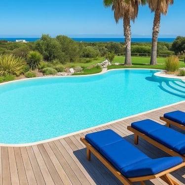 Rilassati nella piscina esclusiva con lettini e ombrelloni.